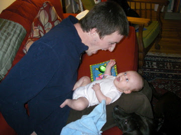 Abby is starting to be more aware of Bruiser, as he loves to come up to her and sniff her face, lick her hands, and is generally very curious about her. He is so sweet and gentle with her! I can't wait for then to play together when she gets bigger.